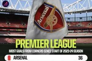 23-24賽季以來英超角球進球最多:槍手36球斷崖領(lǐng)先,藍軍21球第2