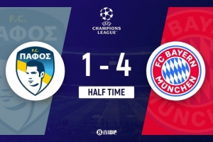 體育資訊10月1日訊 北京時間10月1日凌晨3:00,歐冠聯賽階段第2輪,帕福斯在斯泰利奧斯基里亞基迪斯體育場迎戰拜仁。上半場凱恩雙響,格雷羅建功,杰克遜傳射,奧利塞兩助攻,金玟哉解圍失誤,奧爾西奇遠射世界波破門,拜仁暫4-1帕福斯。