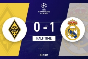 上半場沒有補時,阿拉木圖凱拉特0-1皇馬。