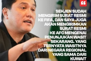 托希爾表示,印尼足協已就安排科威特裁判吹罰世預賽一事向國際足聯和亞足聯正式提交了抗議信。