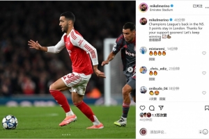 阿森納中場梅里諾社媒曬出比賽照片,并寫道:“歐冠重回北五區(qū),將3分留在倫敦。”