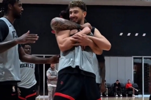 體育資訊10月2日訊 近日在火箭隊內的訓練中申京面對亞當斯的防守貢獻了一記暴扣,之后又在后者面前投進了一個三分,結果慘遭海王“鎖喉”。