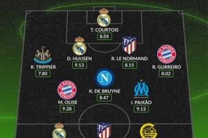 后衛:特里皮爾(紐卡)、赫伊森(皇馬)、勒諾爾芒(馬競)、格雷羅(拜仁)