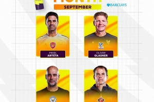 體育資訊10月2日訊 英超公布9月份最佳教練候選名單,阿爾特塔、格拉斯納、瓜迪奧拉和勒-布里斯入圍。