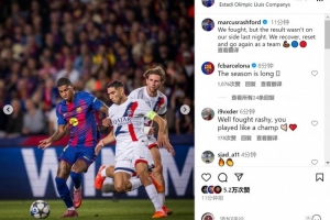 拉什福德社媒曬出比賽照片,并寫道:“我們努力戰斗,但昨晚的比賽結果不如我們所愿。”