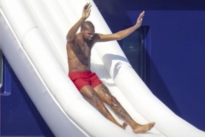 女主持人:“休賽期我沒看到任何游艇滑梯的狗仔照。我有點失望。”