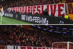 體育資訊10月3日訊 《巴黎人報》報道,在加拉塔薩雷1-0戰勝利物浦的歐冠比賽中,加拉塔薩雷球迷拉出許多橫幅,聲援巴勒斯坦民眾。