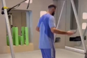 體育資訊10月3日訊 本澤馬更新社媒動(dòng)態(tài),曬出在健身房內(nèi)跳繩的視頻。