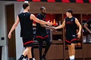 火箭官推曬訓練營第4日:KD擊掌謝潑德 卡佩拉與亞當斯相擁