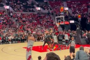 開拓者隊內表演賽:楊瀚森挨了克林根一肘倒地 舉著雙手緩緩起身